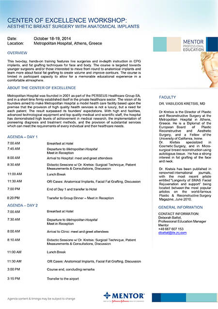 Center of Excellence Workshop: Aesthetic Breast Surgery With Anatomical Implants